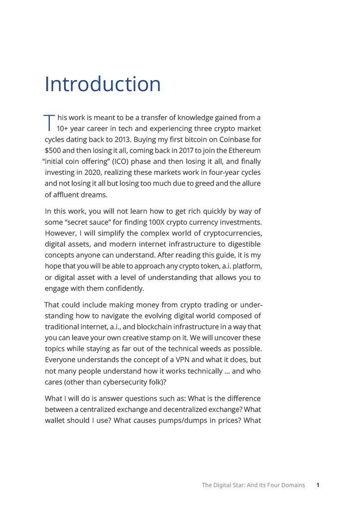 I began writing this Summer of 2024. None of it was written with ChatGPT or any other Large Language Model (LLM). I was becoming disheartened by the number of people I met day to day (Baristas, Bartenders, Uber Drivers, etc) who did not have any exposure to digital assets (crypto) because they felt they weren't smart enough, or perceived it all to be too complicated. Having worked as a Data Privacy consultant for a global crypto exchange, and a tech ambassador for an Ethereum scaling solution, I wanted to put together an engaging and informative guide designed to be digested within an hour that will empower any person regardless of educational background to confidently get exposure to the new digital age.